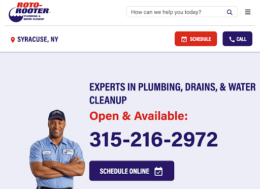 Roto-Rooter is one of the most recognizable plumbers in Syracuse, particularly for emergency drain and sewer issues. It has been licensed and insured since 1935. The local franchise provides 24/7 plumbing, drain cleaning and water cleanup services for homes and businesses, including sewer backups, severe clogs and water damage restoration.